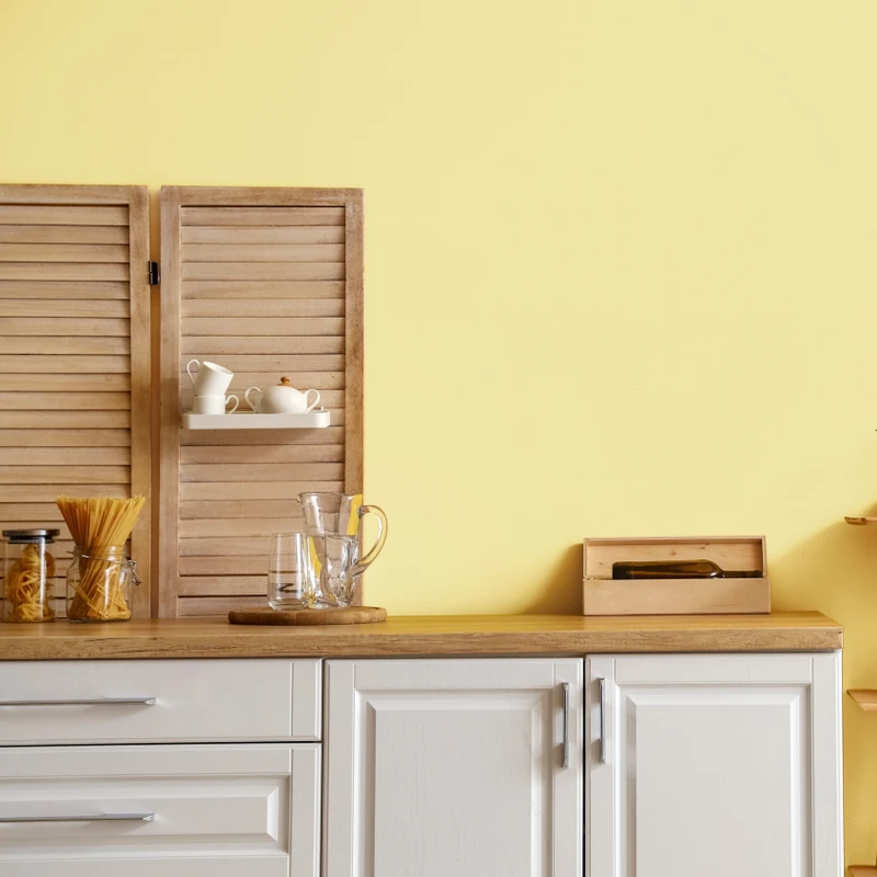 Jasny, ciepły odcień słomkowej żółci. Rozjaśnia wnętrze i wnosi w codzienny rytm radosną atmosferę. Dobrze współgra z bielą, jasnymi meblami i kremowymi dodatkami. Sprawdzi się w kuchni, jadalni i przestrzeniach dziennych. Dzięki niemu wnętrze zyska więcej słońca i uśmiechu.