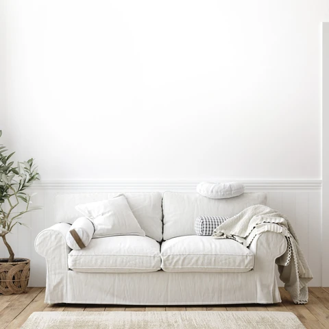 Ponadczasowe rozwiązanie do przechowywania w postaci klasycznej, drewnianej komody także może urzekać swoją formą. Pomalowana na odcień spokojnego beżu Czysta Kartka z palety Dekoral EXPRESS TOP swobodnie koresponduje z pastelowym błękitem ścian, wypełniając wnętrze harmonią i stonowaną elegancją. Nocna lampka i wazon z kwiatami będę przysłowiową „kropką nad i” tej dyskretnej aranżacji.