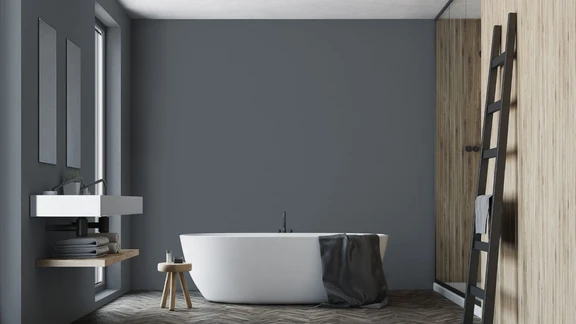 Ciemny, surowy kamień, drewno, biała porcelana i szary kolor w łazience to tend, który święci triumfy od kilku sezonów. Jeżeli nie chcesz płytek na ścianie, możesz wybrać farbę w stylowym odcieniu Grafitowy z linii plamoodpornych farb Dekoral EFFECT 3in1. Jest to rozwiązanie, które zapewni intensywny kolor ścian, a dodatkowo farba sprawdzi się w miejscach wyjątkowo narażonych na wilgoć jakim są łazienki. Jest odporna na plamy, zmywanie i szorowanie, a także na grzyby i pleśnie. Dzięki temu zachowanie higieny, czystości i ładnego kolory będzie łatwiejsze.