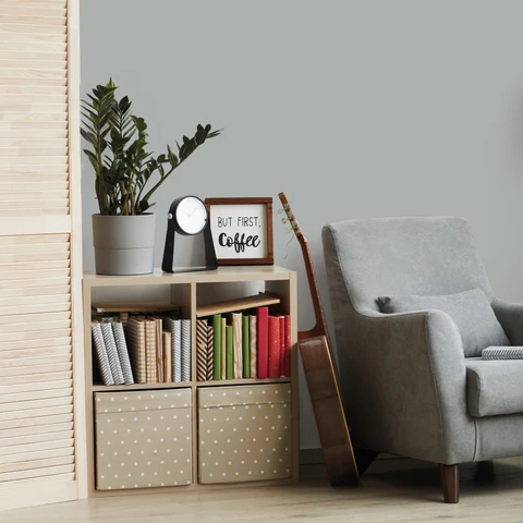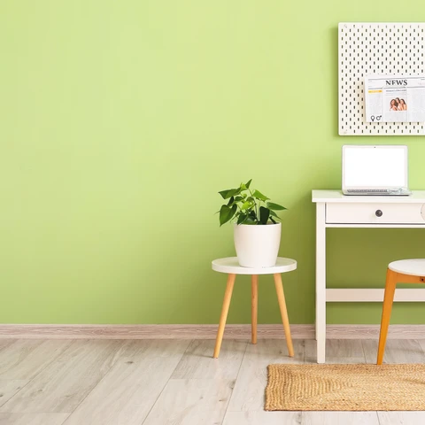 Przytulny kącik do czytania to marzenie niejednego mola książkowego. Miękki fotel, dobre oświetlenie, półka na książki to obowiązkowe elementy. Aranżując taką przestrzeń zadbaj o odpowiednią kolorystykę, która będzie sprzyjała relaksowi, skupieniu, ale też pracy. Kolor nie może być zbyt intensywny, aby nie rozpraszał. Nasz wybór to Szary ołówkowy z palety plamoodpornych farb Dekoral EFFECT 3in1 – głębszy odcień szarego, ale też świetlisty. Świetnie będzie korespondował z pluszowym obiciem fotela, jasnymi meblami np. sosnowymi lub białymi. Będzie dobrym tłem do wyeksponowania kolorowych okładek książek na półce, grafik i zdjęć w prostych ramach czy roślin doniczkowych.
