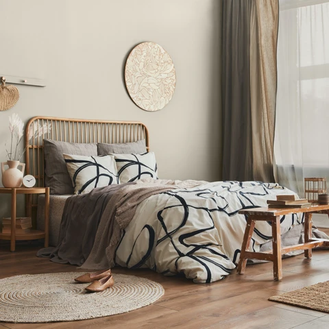 Córka Marty i Mariusza właśnie się wyprowadziła, więc postanowili zmienić wolną przestrzeń w wymarzoną sypialnię. Wybór tego jedynego odcienia z palety kilkudziesięciu nie był prosty, ale samo malowanie przebiegło szybko i bez zbędnych niespodzianek. Sprawdź jaki efekt udało im się osiągnąć w sypialni z przytulnym kolorem Beżowe boho z palety farb Dekoral MOC KOLORU.